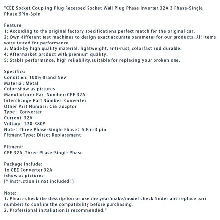 CEE Steckdose Kupplungsstecker Unterputzdose Wandstecker Phasenwender 32A 3 Phasen-Einphasen 5Polig-3Polig