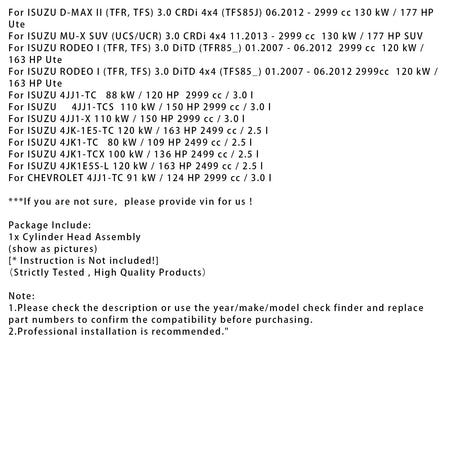 Komplett montierter Zylinderkopf 4JJ1-TC 4JK1-TC für ISUZU D-MAX I 2,5L 3,0L