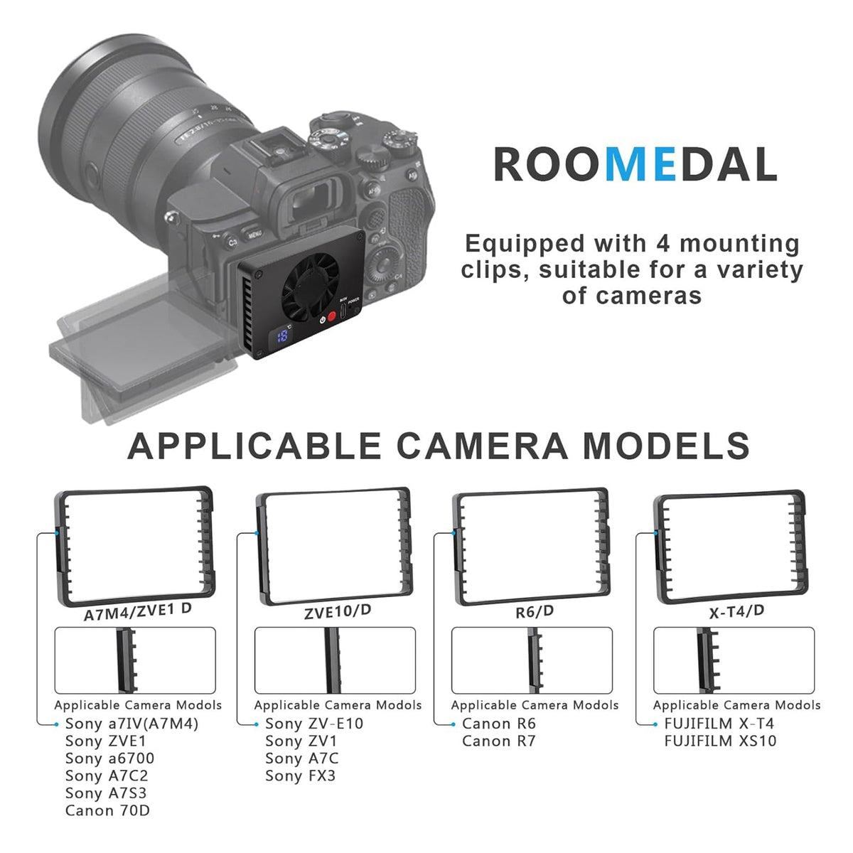 Kühlung der Kamera mit Temperaturregelungs-Bildschirmanzeige, Live-Kamera-Kühler, geeignet für Sony Canon R5/R6/R8/Fuji Xt4-Kühler