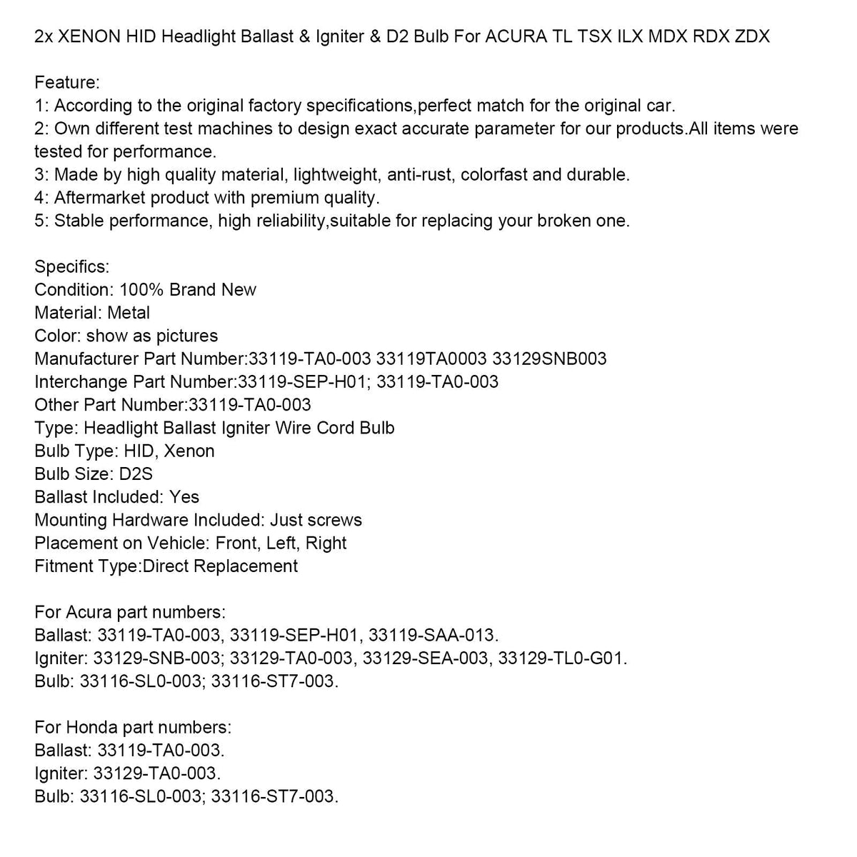 2x XENON HID Scheinwerfer Ballast & Zünder & D2 Birne Fit Für ACURA TL TSX ILX MDX RDX ZDX