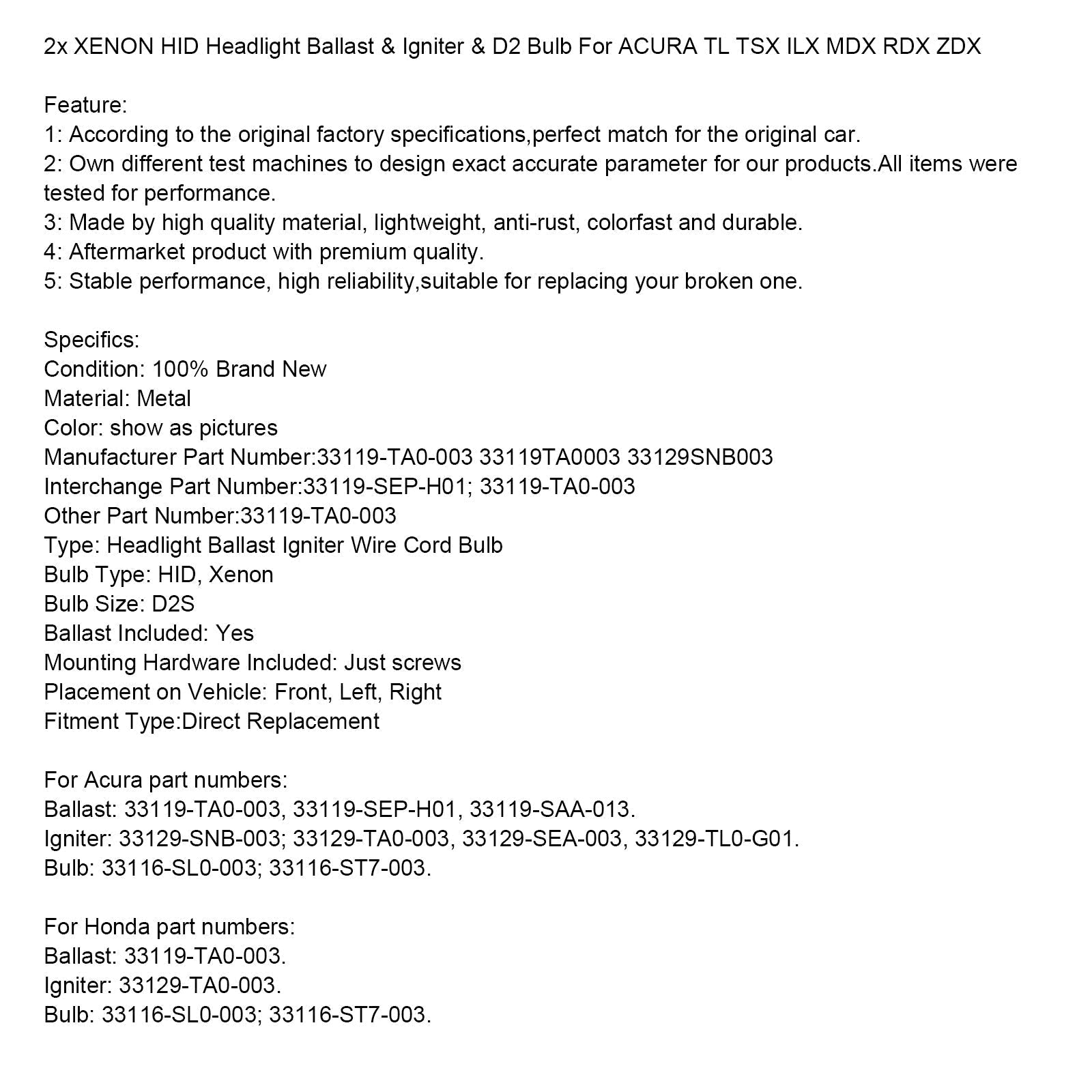 2x XENON HID Scheinwerfer Ballast & Zünder & D2 Birne Fit Für ACURA TL TSX ILX MDX RDX ZDX