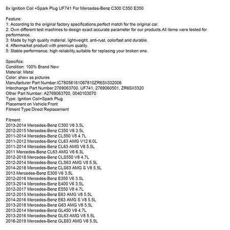 6x Zündspule + Zündkerze UF741 Für Mercedes-Benz C300 C350 E350