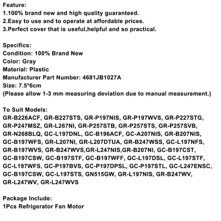DC 13V Kühlschrank Gefrierschrank Verdampfer Lüftermotor für LG Kühlschrank 4681JB1027A