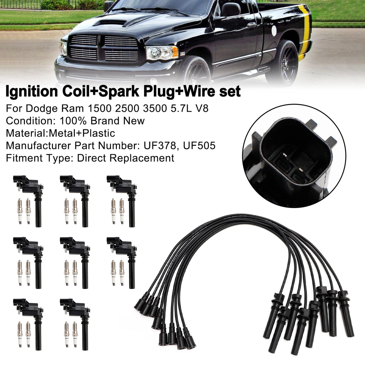 Dodge Ram 1500 2500 3500 5,7L V8 UF378 Zündspule + Zündkerze + Kabelsatz