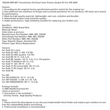 DQ500 0BH 0BT übertragung überholung Dichtungen Kolben Dichtung Kit Für VW AUDI