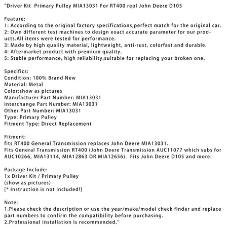 Antriebssatz Primärriemenscheibe MIA13031 Für RT400, Ersatz für John Deere D105