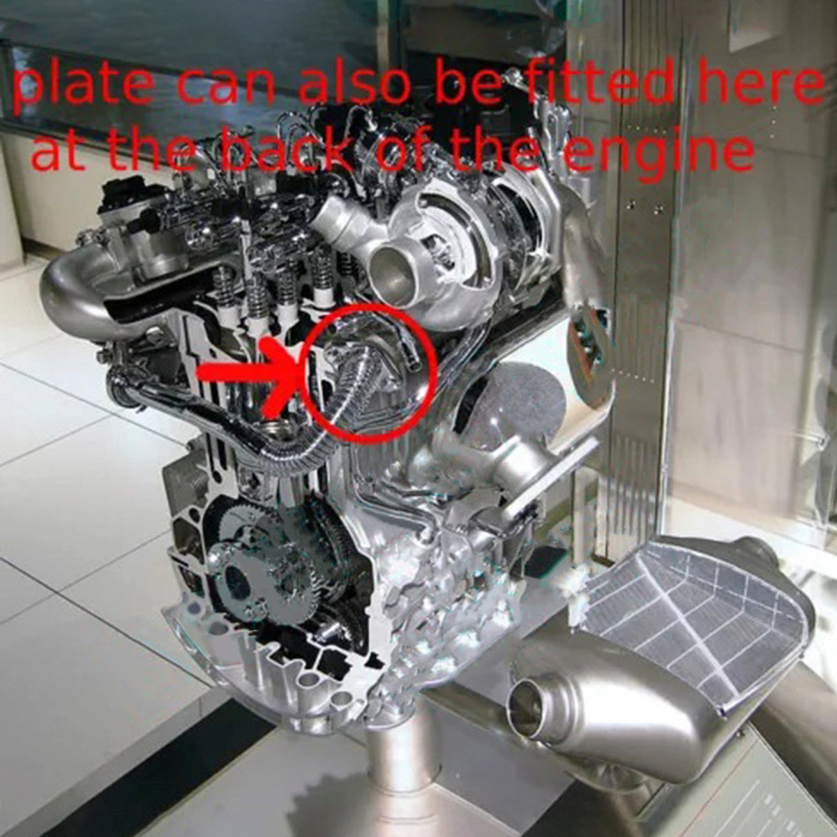 Diese Platte schaltet die Motorkontrollleuchte ein, schaltet aber nicht in den Notlaufmodus. (Ein Loch darin würde trotzdem die EML einschalten, also sinnlos.) Sie ist geschlitzt, um die Montage zu erleichtern.