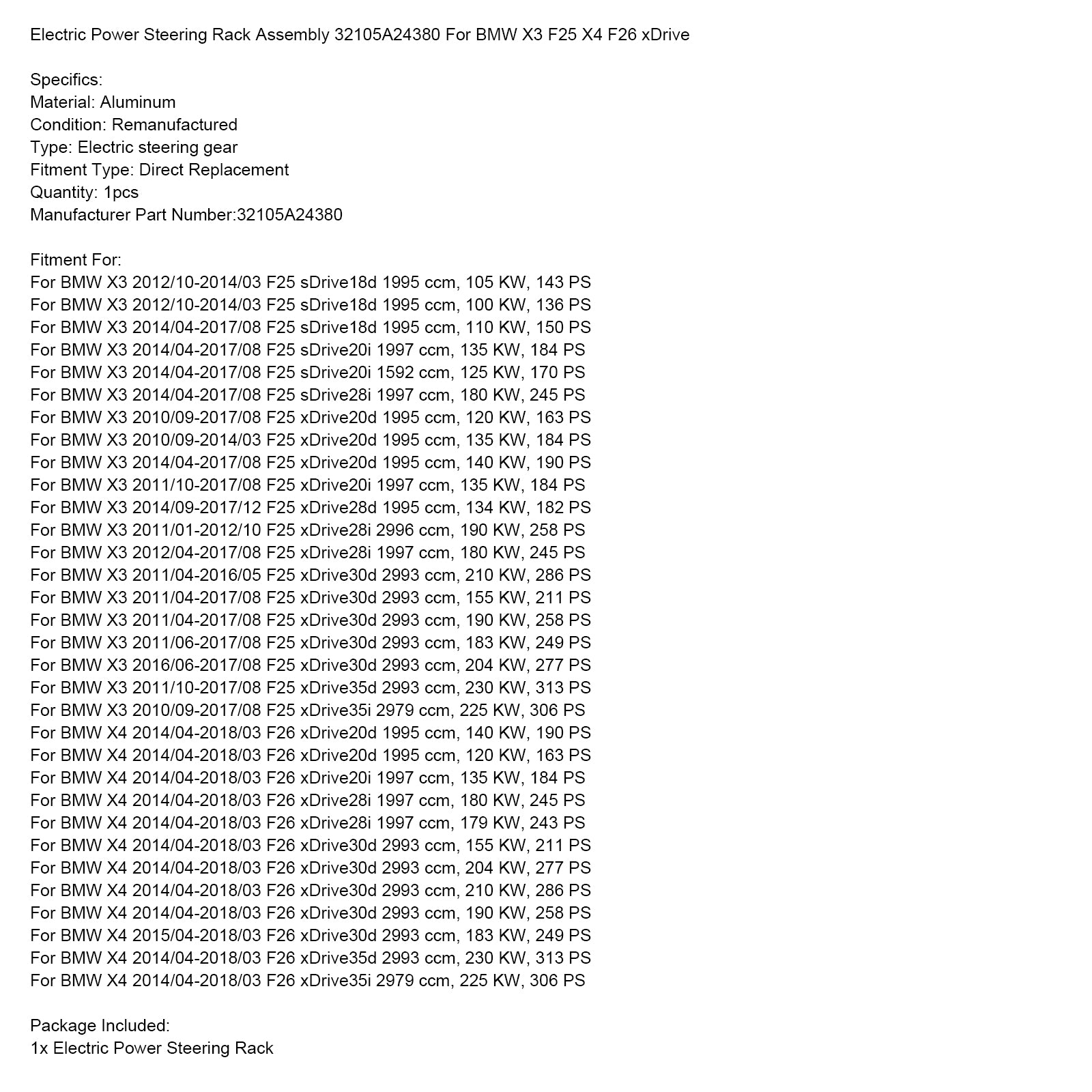 Electric Power Steering Rack Assembly 32105A24380 For BMW X3 F25 X4 F26 xDrive