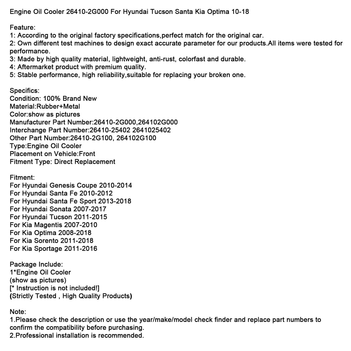 Motorölkühler 26410-2G000 Passend für Hyundai Tucson, Santa Fe, Kia Optima 10-18