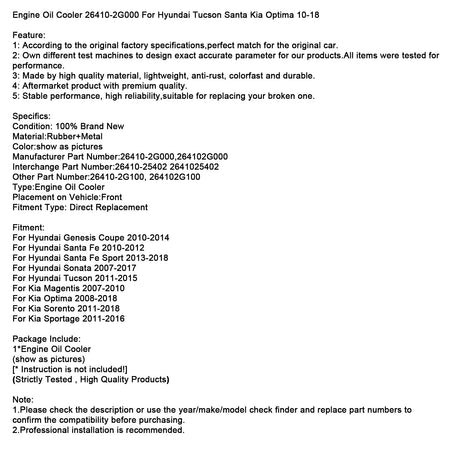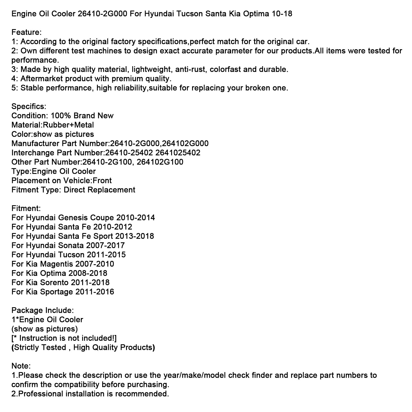 Motorölkühler 26410-2G000 für Hyundai Tucson, Santa Fe, Kia Optima 2010-2018