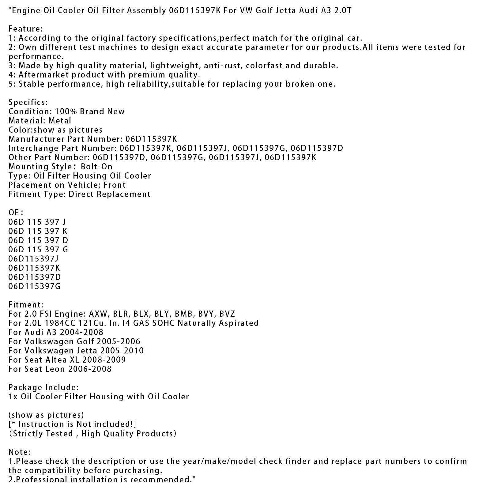 Motorölkühler Ölfilter Montage 06D115397K Für VW Golf Jetta Audi A3 2,0 T