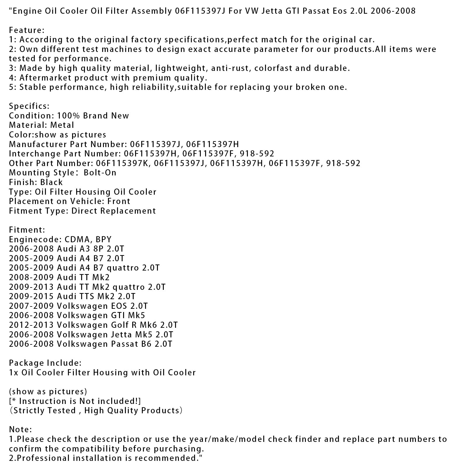 Andere Teilenummer: 06F115397K, 06F115397J, 06F115397H, 06F115397F, 918-592