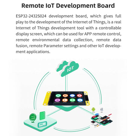 Das ESP32-2432S024-Entwicklungsboard, das die Entwicklung des Internets der Dinge voll ausschöpft, ist ein echtes Internet-of-Things-Entwicklungstool mit einem steuerbaren Anzeigebildschirm, das für die APP-Fernsteuerung, die Fernerfassung von Umgebungsdaten und die Ferndatenfusion verwendet werden kann , Remote-Parametereinstellungen und andere IoT-Entwicklungsanwendungen.