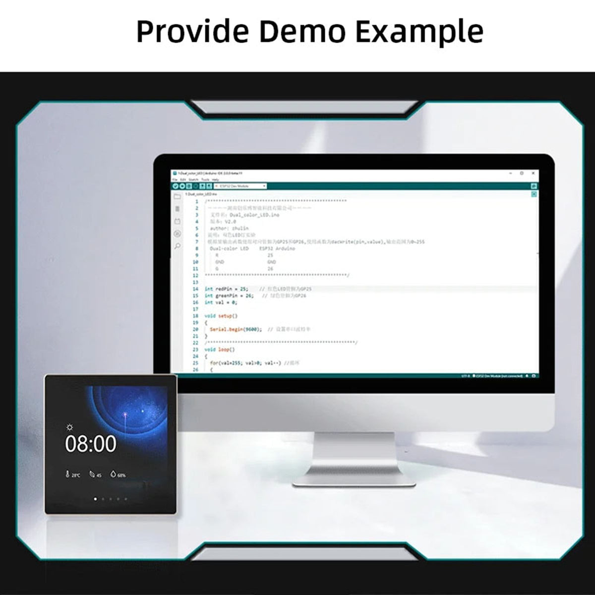 Das LCD-Modul verwendet das ESP32-S3-WROOM-1-Modul als Hauptsteuerung. Die Hauptsteuerung ist eine Dual-Core-MCU, die WLAN- und Bluetooth-Funktionen integriert. Die Hauptsteuerfrequenz kann 240 MHz, 512 KB SRAM, 384 KB ROM, 8 MB PSRAM erreichen, und die Flash-Gr??e betr?gt 16 MB, die Anzeigeaufl?sung 480 * 480, kapazitive Berührung. Das Modul umfasst ein LCD-Display, einen Steuerkreis für die Hintergrundbeleuchtung und einen Steuerkreis für den Touchscreen. Buchen Sie die TF-Kartenschnittstelle und die IO-Port-Schnittstelle. Dieses Modul unterstützt die Entwicklung von Arduino IDE, ESP IDE, Micropython, Mixly usw.