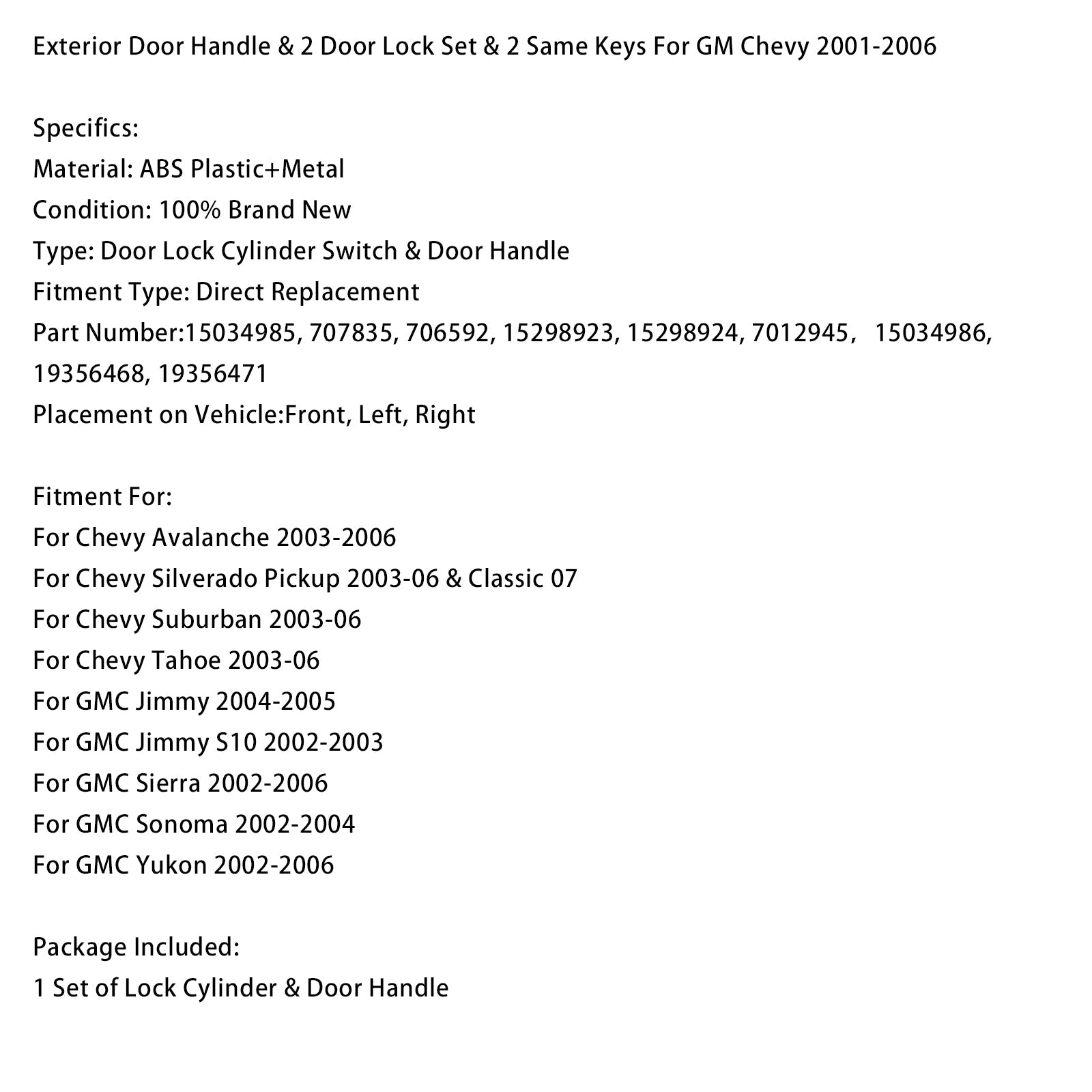 Türgriff außen, 2 Türschlösser und 2 identische Schlüssel, passend für GM Chevy 2001-2006