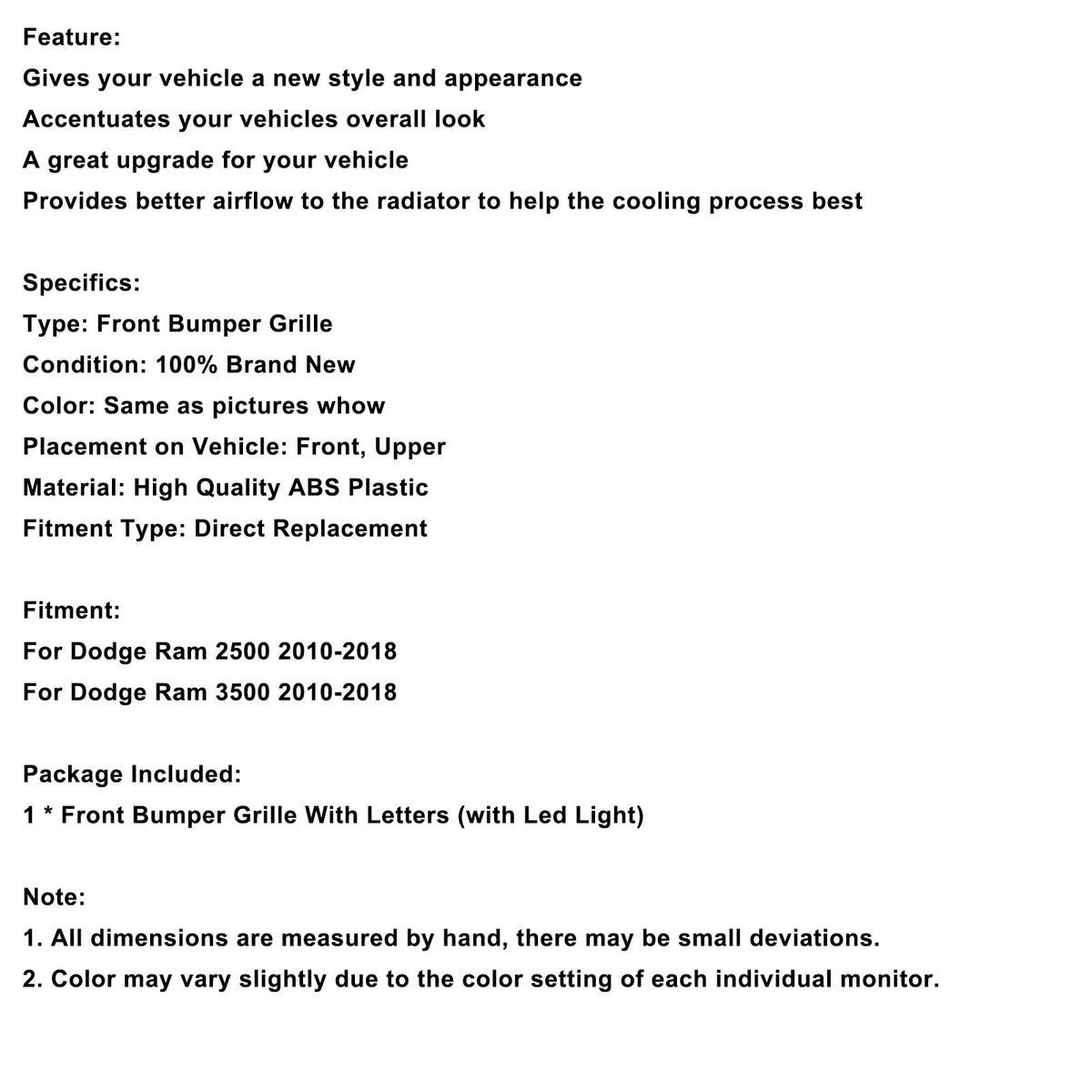 Frontstoßstangengrill passend für Ram 2500/3500 Laramie Limited 2010-2018 mit LED-Beleuchtung