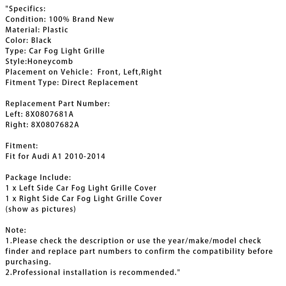 1. Bitte überprüfen Sie vor dem Kauf die Beschreibung oder verwenden Sie den Prüffinder für Jahr/Marke/Modell und ersetzen Sie die Teilenummern, um die Kompatibilität zu bestätigen.