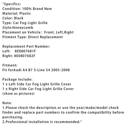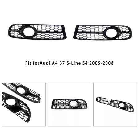 Frontstoßstange Honeycomb Nebel Kühlergrill Abdeckung Für Audi A4 B7 S-Linie S4 2005-2008 Schwarz