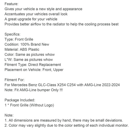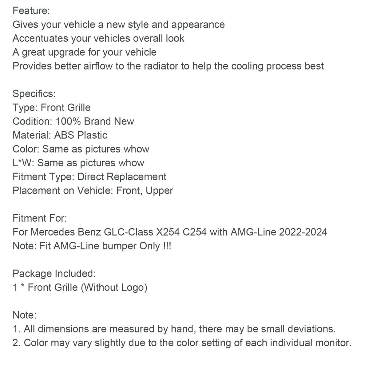 Oberer Kühlergrill für die Frontsto?stange Passend für Mercedes GLC X254 C254 mit AMG-Line 2022+
