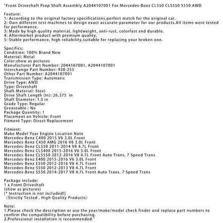 Vordere Antriebswelle Prop Welle Montage A2044107001 Für Mercedes-Benz CL550 CLS550 S550 AWD