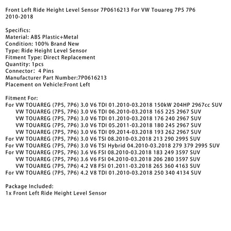 Niveauregulierungssensor vorne links 7P0616213 für VW Touareg 7P5 7P6 2010-2018