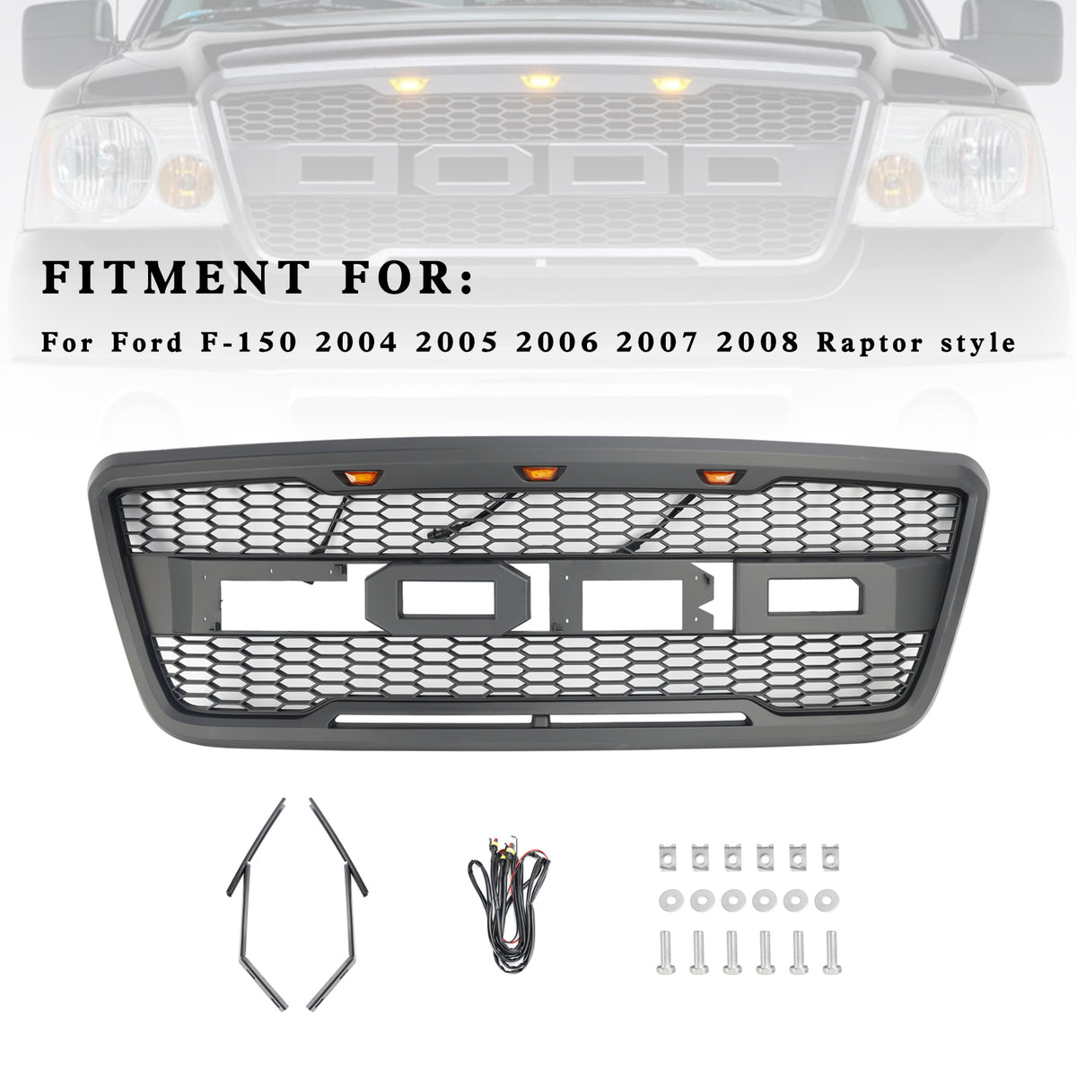Frontgrill im Mesh-Design mit LED – passend für Ford F-150 2004–2008, Raptor Style