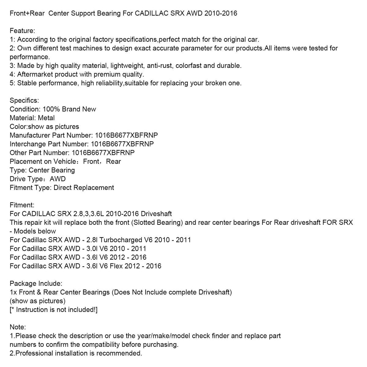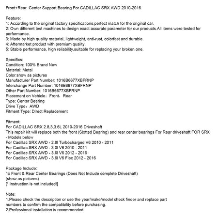 Vorne + Hinten Center Unterstützung Lager Fit Für CADILLAC SRX AWD 2010-2016