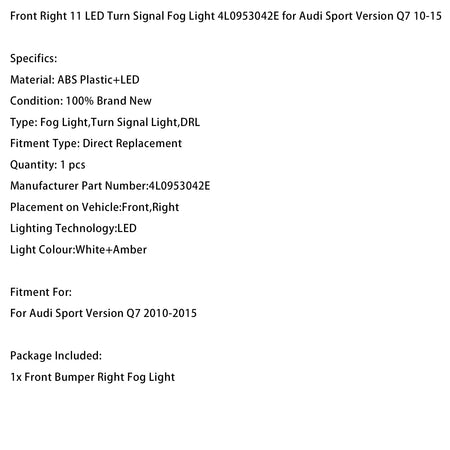 Front Right 11 LED Blinker Nebelscheinwerfer 4L0953042E Passend für Audi Sport Version Q7 2010-2015