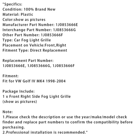 1. Bitte überprüfen Sie vor dem Kauf die Beschreibung oder verwenden Sie den Prüffinder für Jahr/Marke/Modell und ersetzen Sie die Teilenummern, um die Kompatibilität zu bestätigen.