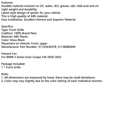 2020–2023 BMW 2er F44 Coupé M Diamantglanz Schwarz Frontgrill 51135A39378 51138080494