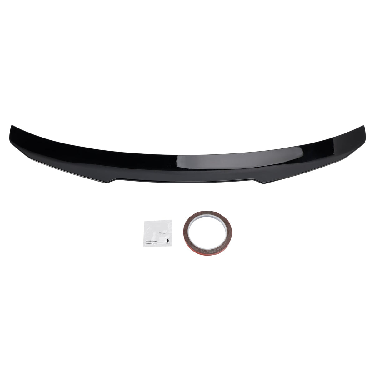 Sie erhalten eine Rolle Klebeband. Dieses dient dazu, den Spoiler bei der Montage probeweise in Position zu bringen; es ist nicht für die dauerhafte Befestigung gedacht. Der Spoiler kann mit starkem Klebeband, Klebstoff oder durch Bohren montiert werden.