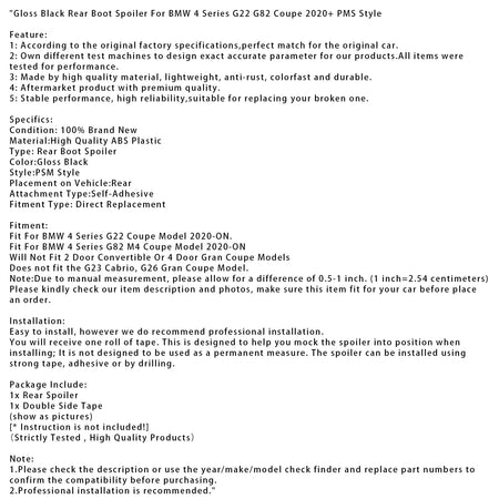 Heckspoiler in Hochglanzschwarz, passend für BMW 4er G22 G82 Coupé ab 2020 (PMS-Stil)