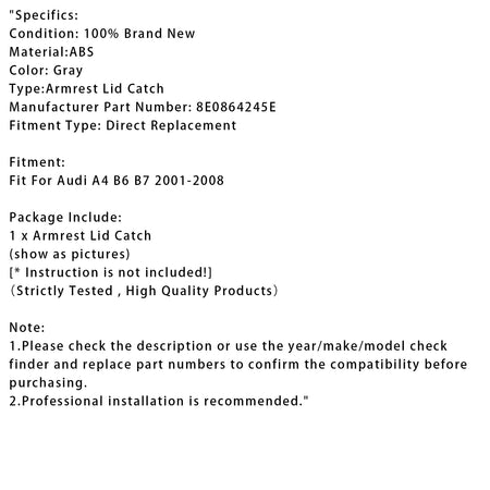 Grau Konsole Center Armlehne Deckel Latch Für Audi A4 B6 B7 2001-2008 8E0864245E