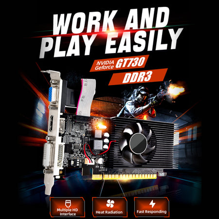 GT730 4G Grafikkarte GDDR3 Home Office HD Display Schnittstelle HDMI VGA DVI