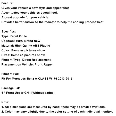 GTR Style Front Bumper Grill Grille Für Mercedes Benz A CLASS W176 2013-2015