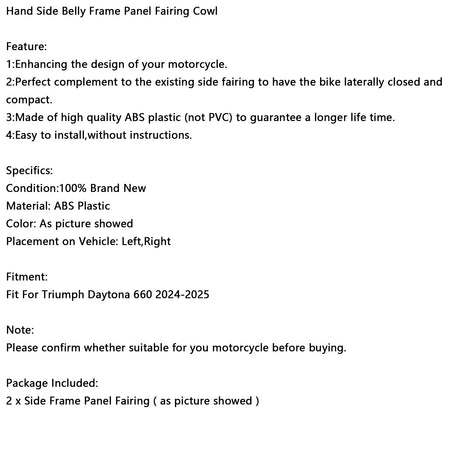 2024–2025 Daytona 660 Hand Side Bauch Rahmen Panel Verkleidung Cowl