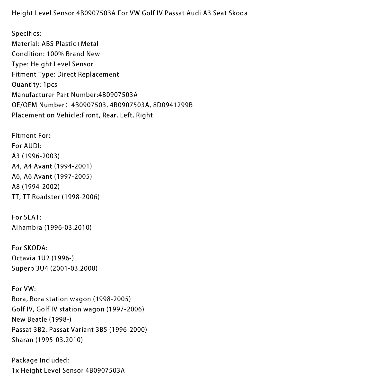 Höhensensor 4B0907503A für VW Golf IV, Passat, Audi A3, Seat, Skoda
