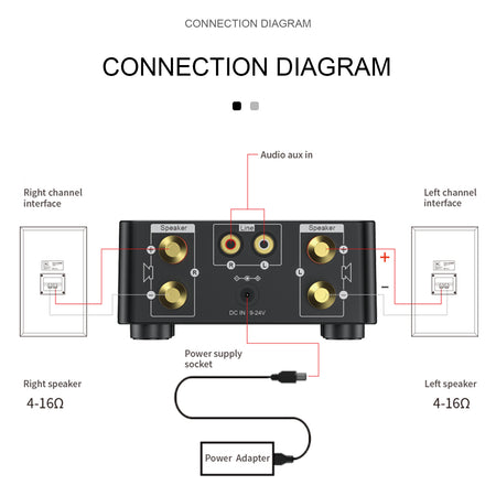 4. Kompaktes Design und exquisites Erscheinungsbild, attraktives Geh?use mit LED-Anzeige und Netz-/Modusschalter, sehr gut geeignet für den Heim- und Desktop-Audiosystem-Einsatz mit 9–24 V Gleichspannung, erm?glicht den Einsatz im Auto oder Motorrad.