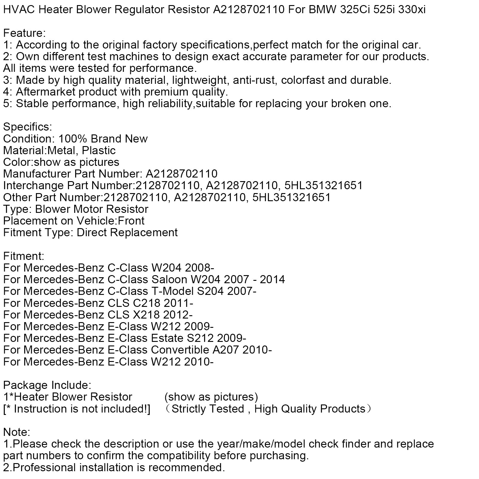 Heizungsgebläseregler-Widerstand A2128702110 für BMW 325Ci 525i 330xi
