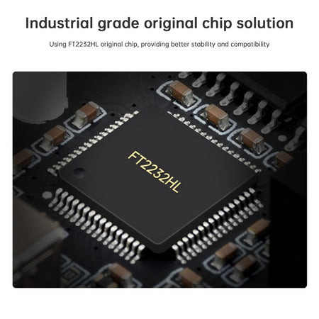 Durch die Verwendung der ursprünglichen FT2232HL-Chipl?sung ist die Hochgeschwindigkeitskommunikation stabil, zuverl?ssig und kompatibel. Unterstützt die USB-Erweiterung von 2 RS485-Kan?len, die gleichzeitig und unabh?ngig kommunizieren k?nnen.