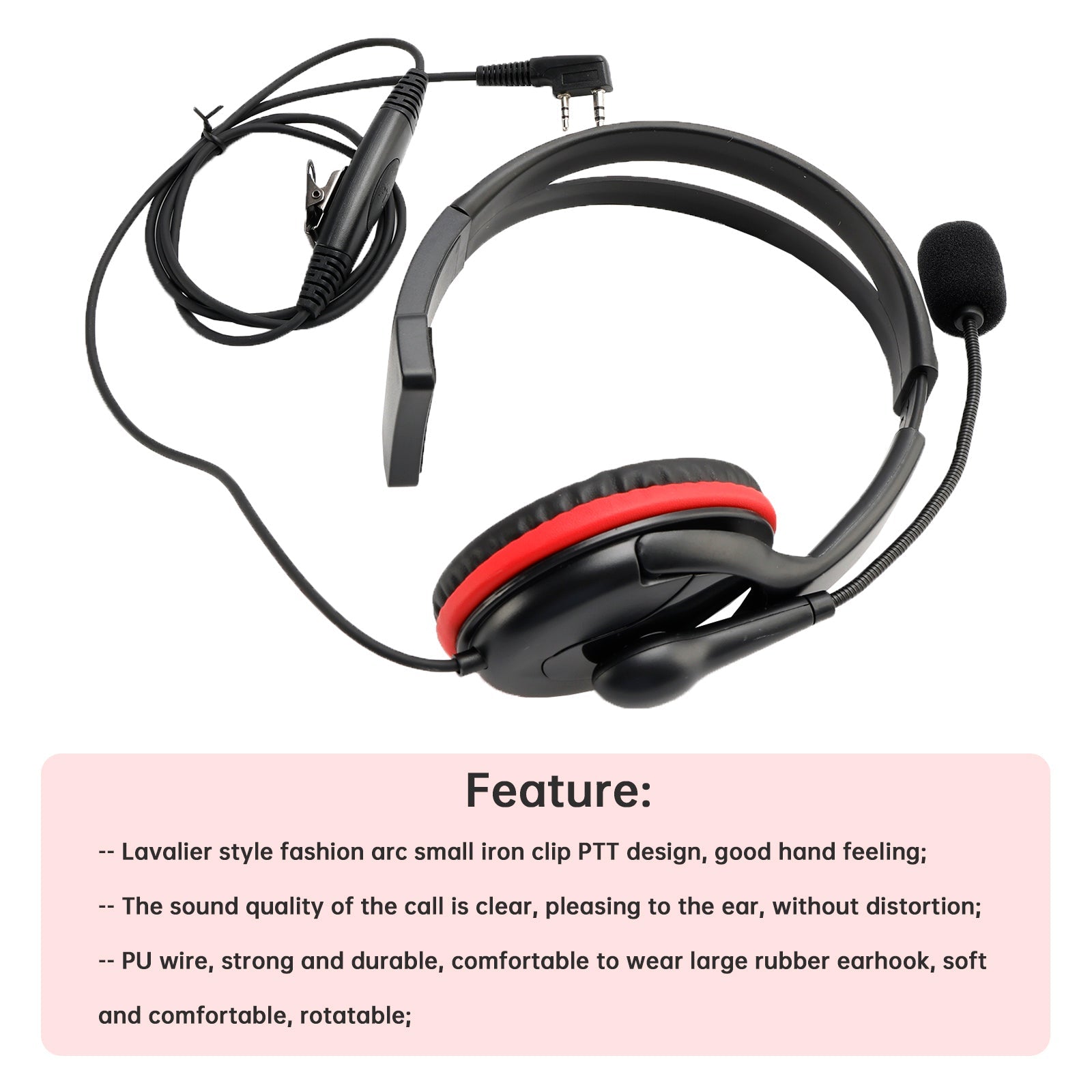 3. PU-Draht, stark und langlebig, angenehm zu tragender gro?er Gummi-Ohrbügel, weich und bequem, drehbar;