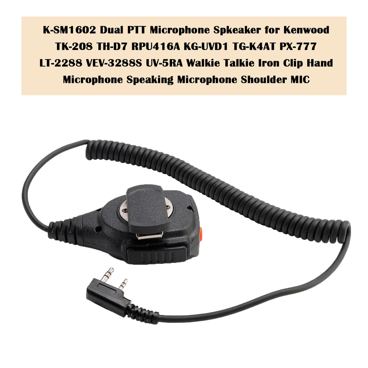 K-SM1602 Dual PTT Mikrofon Lautsprecher für Kenwood TK-208 TH-D7 RPU416A KG-UVD1 TG-K4AT PX-777 LT-2288 VEV-3288S UV-5RA Walkie Talkie Eisen Clip Handmikrofon Sprechmikrofon Schultermikrofon