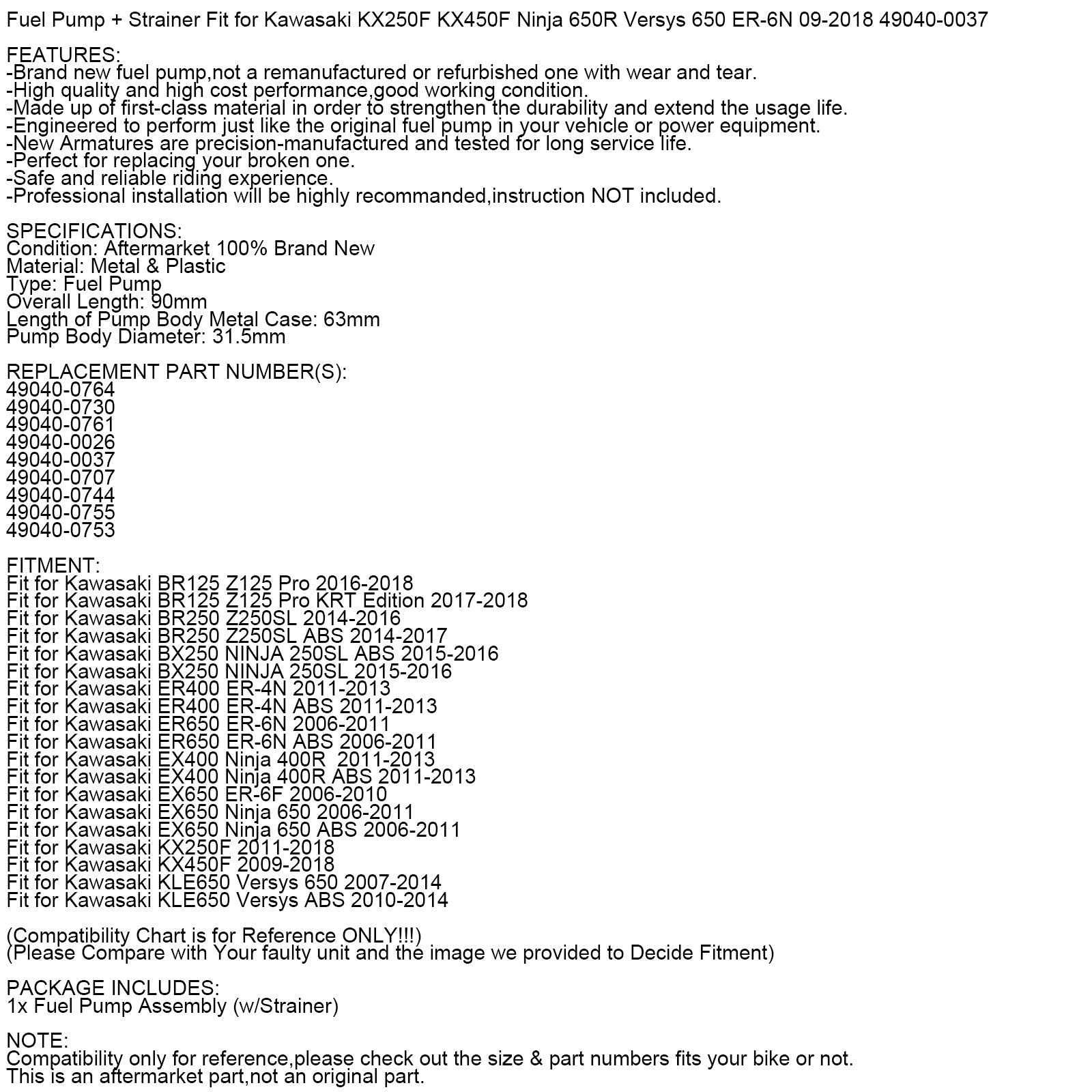 Kraftstoffpumpe + Sieb für Kawasaki KX250F KX450F NINJA 650R VERSYS 650 ER-6N 09-2018 49040-0037