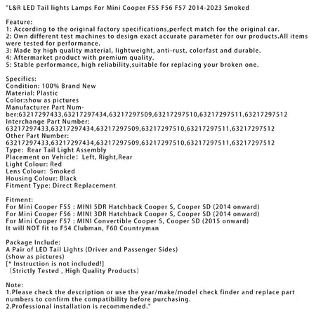 L&R LED Rückleuchten Lampen für Mini Cooper F55 F56 F57 2014-2023 geräuchert