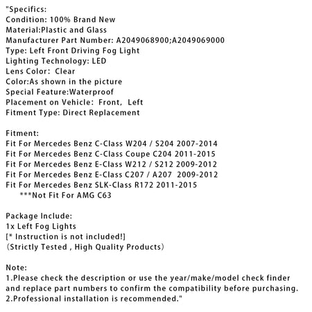 LED Tagfahrlicht Links Nebelscheinwerfer Für Mercedes Benz W204 S204 W212 2007-2014
