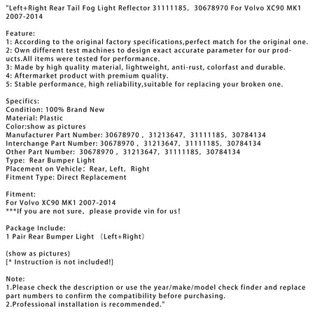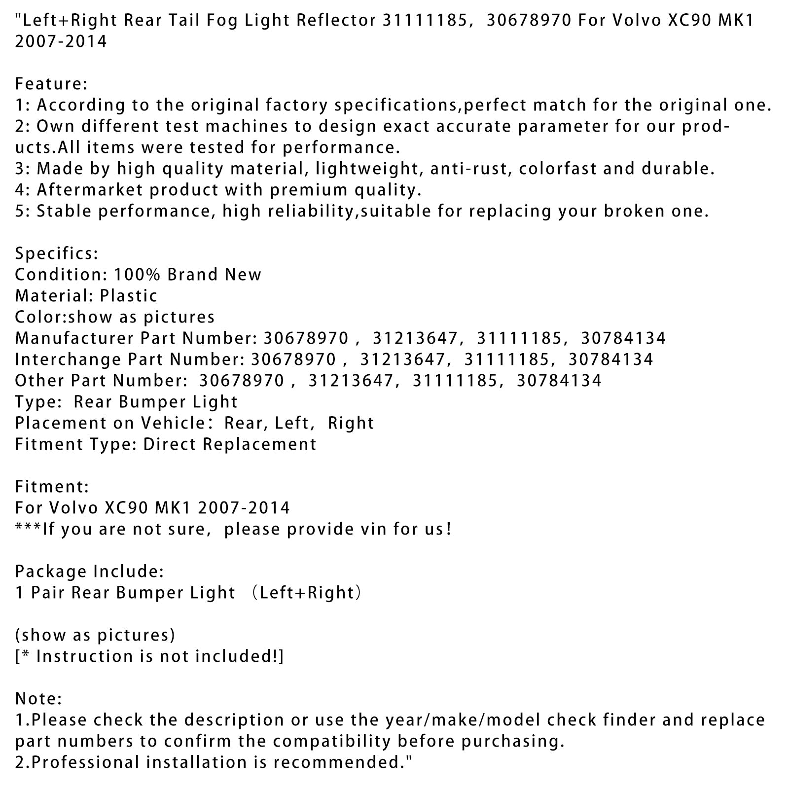 Links + Rechts Hinten Schwanz Nebel Licht Reflektor 31111185,30678970 Für Volvo XC90 MK1 2007-2014