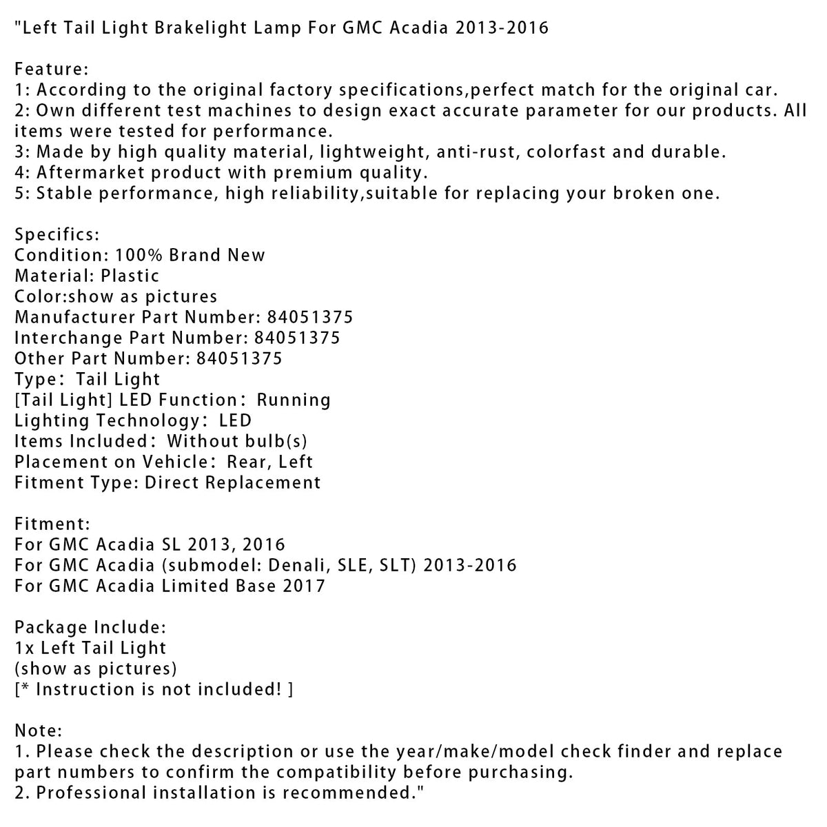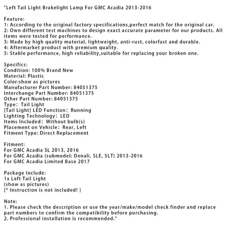Linke Rücklicht-Bremslichtlampe für GMC Acadia 2013-2016