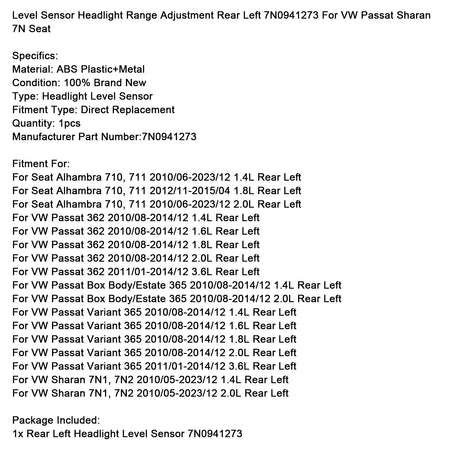 Level Sensor Scheinwerfer Palette Einstellung Hinten Links 7N0941273 Für VW Passat Sharan 7N Sitz