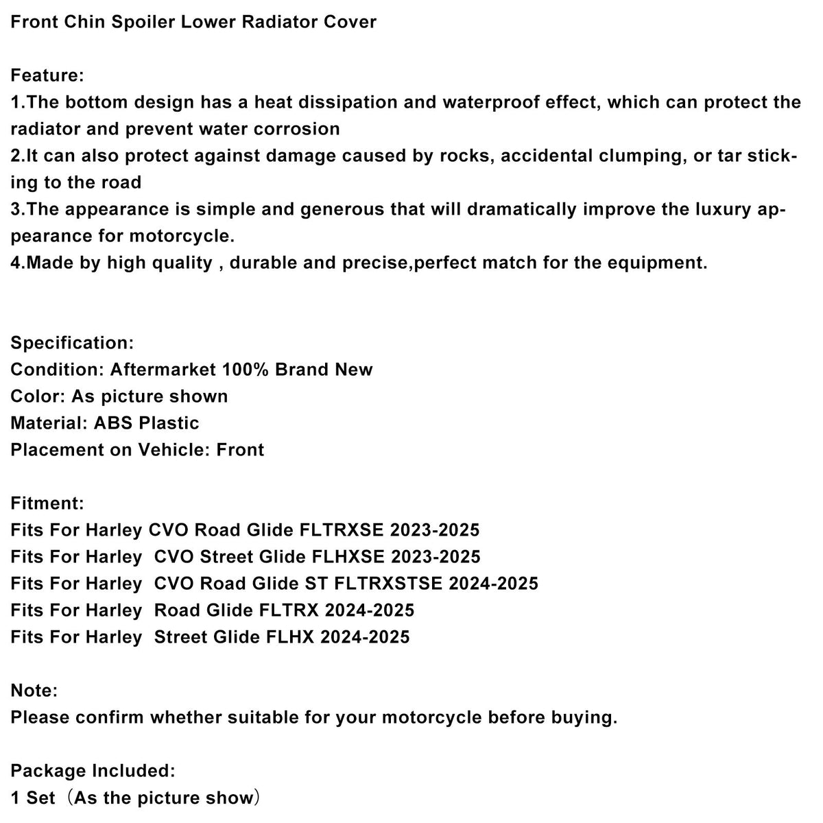 Frontspoiler, untere Kühlerabdeckung, passend für CVO Street Glide FLHXSE 2023-2025