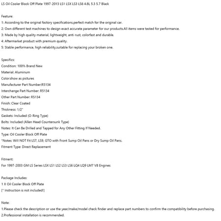 LS-?lkühler-Block-Off-Platte, passend für 1997–2013 LS1 LSX LS3 LS6 4,8 l 5,3 5,7, Schwarz